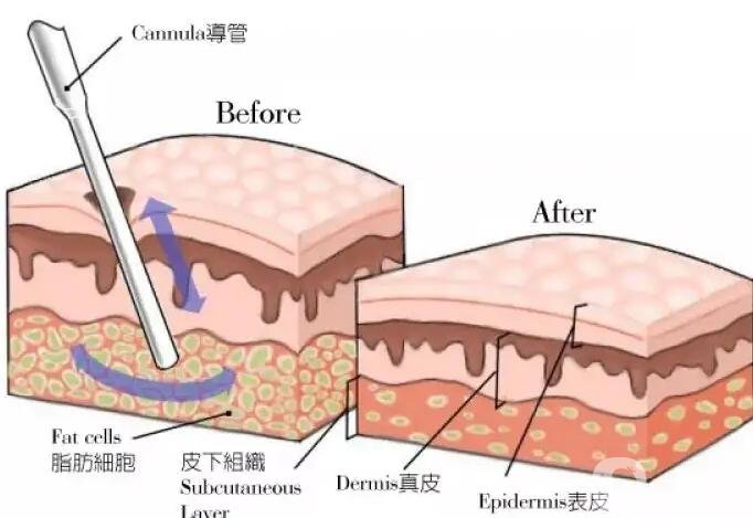 3、直接减少脂肪的量,限制脂肪细胞的肿胀,重组脂肪细胞,使皮下组织粘连,有抑制反弹。