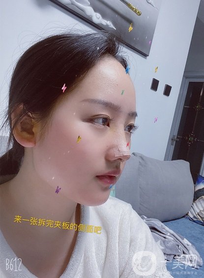隆鼻术后的第三天,这几天的感受,和网上说的基本上差不多,确实很难熬,肿胀的厉害,不敢用手去触摸,睡觉也不能压到鼻子,有种一压会倒的感觉。其实并没有这么夸张,而且现在就是感觉呼吸很困难,毕竟鼻子上夹着东西,很不舒服。第七天来医院复查,可以进行拆卸,拆掉纱布的一刻,鼻子得到了解放,切口在鼻子在里面,所以看不到疤痕。从侧面看起来鼻子的高度,确实改变了不少。