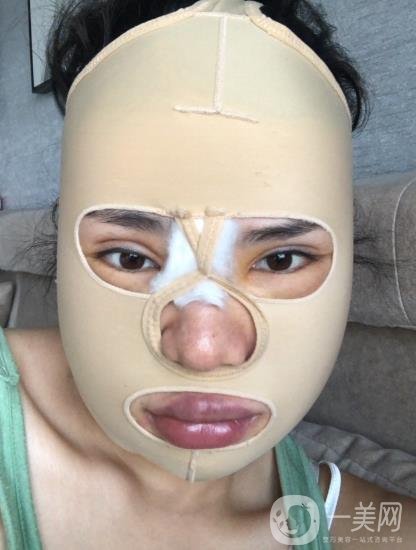 *天,我的头上戴着头套,我感觉特别的不舒服,现在我的眼睛肿胀的也*厉害,还有一些痛感,现在我的嘴里面有切口,有一颗倒倒流管,所以吃饭也不是很方便,只能吃一些流食,吃饭的时候感觉两侧也特别的疼痛 我的面部也不能由大的动作,因为刚做完手术,现在还需要慢慢的养,刚做完手术的头两天我是特别的不舒服,不过这里的服务还是很不错的,医护人员对我的照顾还是蛮周到的,他们经常过来问我有什么需求,特别是护士在我还给我提前在网上订了外卖,是我*喜欢的南瓜粥 。