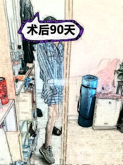 术后还是住了*院,主要是麻药过后觉得还是有些难受,虽然不是很痛,但是这个人是在害怕疼,而且躺床上也不敢翻身,走动有些困难,大腿有拉扯感,可能还是太痛了吧。大腿的肿胀度还好,淤青也有消散了。之前做过功课,也就明白这是正常现象,没有太在意。按照医生嘱咐慢慢恢复,晚上泡个热水脚还是蛮舒服的。