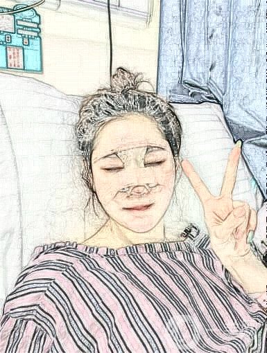嘻嘻我出院了,宝贝们。我鼻子里再也不需要引流管了。感觉整个人都释然了。今天鼻子不像前两天那么难受了,虽然现在还在肿。估计我的鼻子需要几天才能成型。医生说回家后要注意吃清淡的,不要吃辛辣的。伤口部位让我注意保持干燥干净,不沾水。还好我是广东妹子,平时不怎么爱吃辣。虽然还在包扎,但是不知道为什么感觉自己漂亮了一点。刚才我跟闺蜜说的时候,她给了我一个拒绝,还跟我说我怎么这么沾沾自喜。