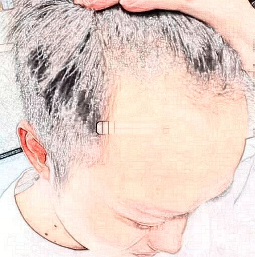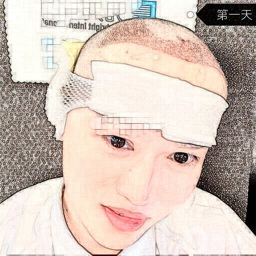 在还没有进行植发手术之前,首先是对我的后脑毛囊部位进行了检测。在确定好了我需要进行移植毛囊的单位多少,以及部位以后。医生就开始为我剃头了,没错,为了方便进行种植和提取毛囊,正如你们所看到的照片,我提成了光头。在进行了表皮的清理和麻醉之后,就开始了毛囊的移植,提纯,以及发际线的毛囊种植手术。由于在进行毛囊的种植是一个比较繁琐的过程,所以种植的毛囊的单位越多耗时的时间就会越长。