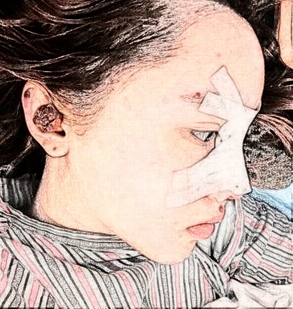 自体肋软骨隆鼻术后一个月:已经二十多天了。前段时间拆线的时候还疼,但是一点都不会淤青,也不会肿。但是,我还是怕撞到它,肋骨上的伤口已经好了。我已经申请了去疤,一定不能留下疤痕,不然穿比基尼不好看。你有没有注意到,自从我做完鼻子以后,你不觉得我的眼睛变大了吗?鼻子的三个角都抬起来了,所以眼角稍微拉开了一点,所以眼睛看起来大了很多,但是现在还是不敢碰鼻子。