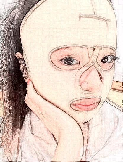 然后我耐心等待了三四天左右,肿胀情况确实有所好转。我开始配戴头套,每天白天的时候一直佩戴着头套,因为要帮助脸部进行塑形和定型,所以我也不敢摘下头套来。虽然有一些勒的慌,但是这正是定型的*果所在。手术之后的一周到了拆线的日子,医生说我恢复的还不错。希望我继续努力。